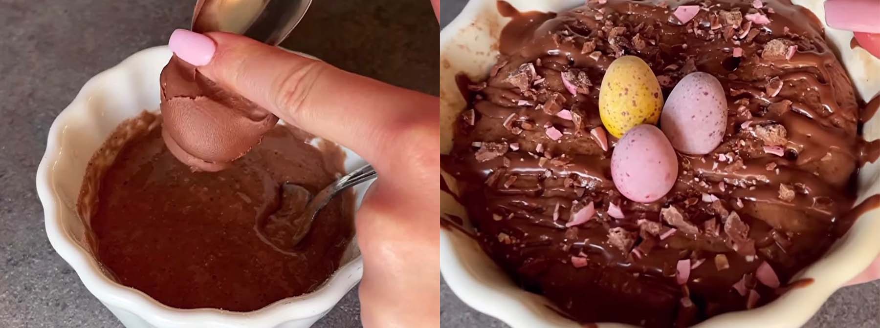je skutočným kandidátom na našu obľúbenú veľkonočnú pochúťku.Vyrobený z neodolateľného srvátkového proteínu s príchuťou čokolády a Proteínelly - je to jednoducho bohatá a chutná pochúťka pre skutočných pôžitkárov. Naviac obsahuje 32 g bielkovín na porciu. A to potrebuje len 2 minúty v mikrovlnnej rúre, aby bolo hotové. Poďme na to...