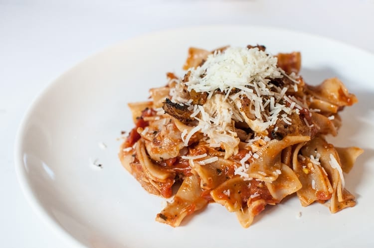 Na tanieri posypeme parmezánom (prípadne aj dochrumkava upečenou kožou) a môžeme podávať. Dobrú chuť!